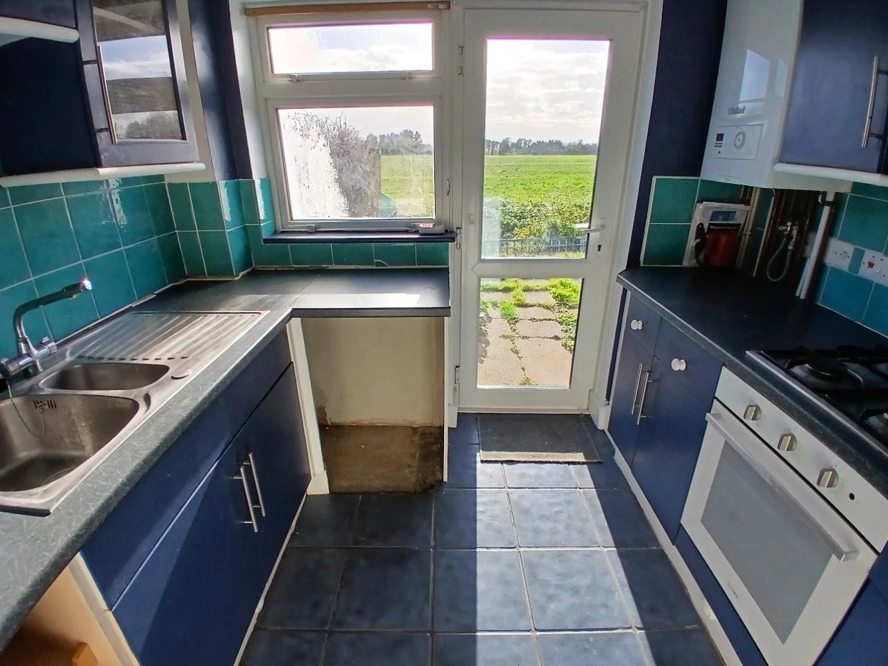 Three bedroom terrace property with kitchen, cloakroom, storage, cupboard, through lounge diner with views across adjacent farmland.