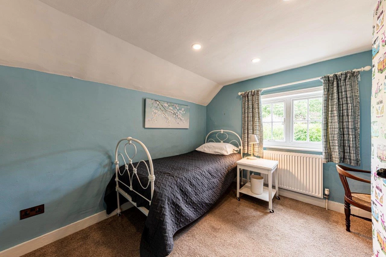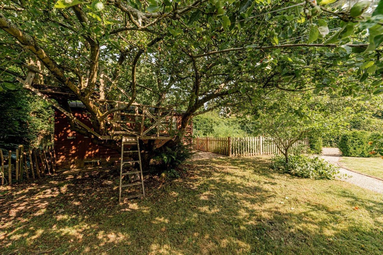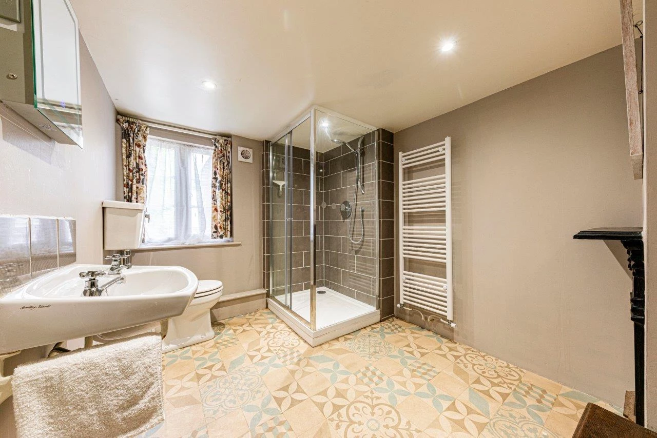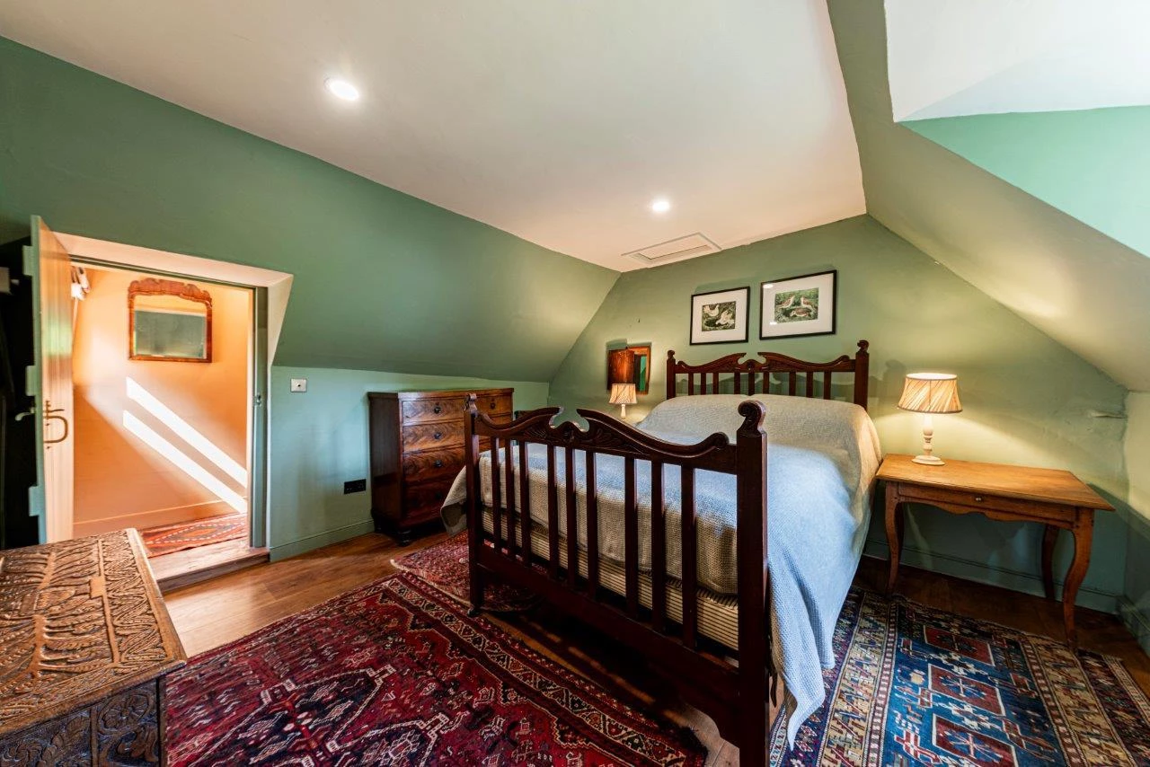 The property offers over 2,600 sq ft of accommodation, including five double bedrooms, three reception rooms, and a large kitchen/breakfast room. The ground floor features a spacious living room with exposed beams, engineered oak flooring, and a magnificent inglenook fireplace housing a contemporary log burner. The sitting room benefits from a second, working log burner dating to 1910, and the separate dining room opens directly to the gardens, making it ideal for entertaining.