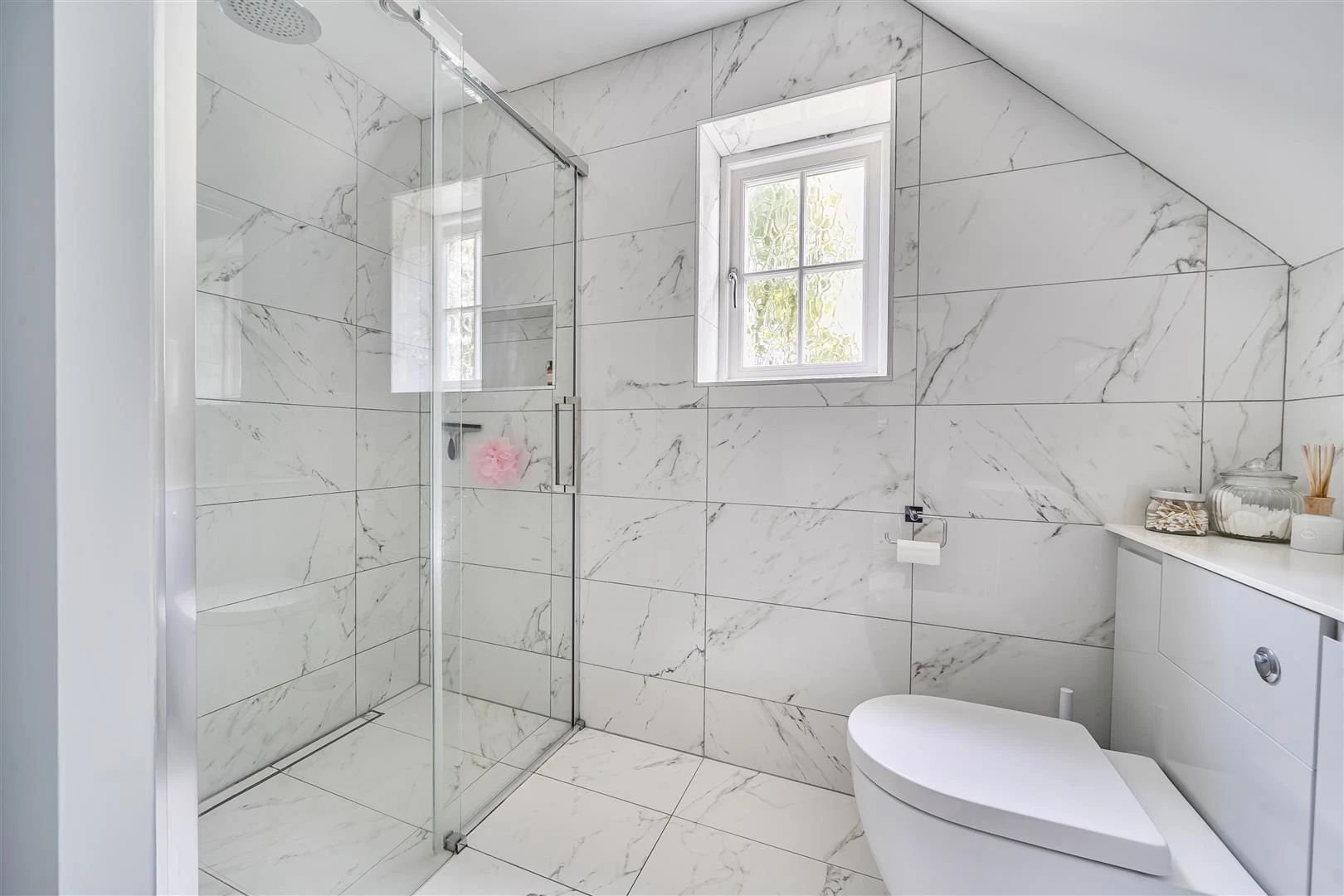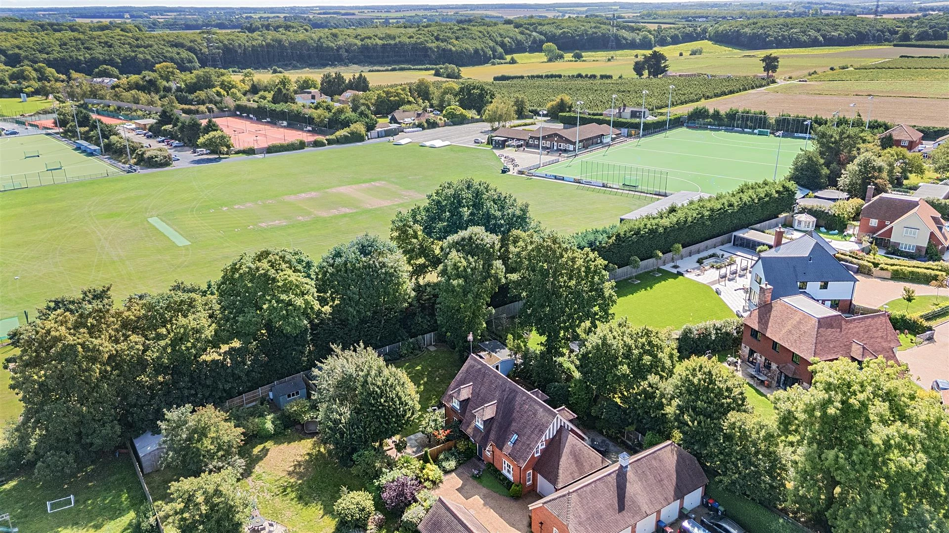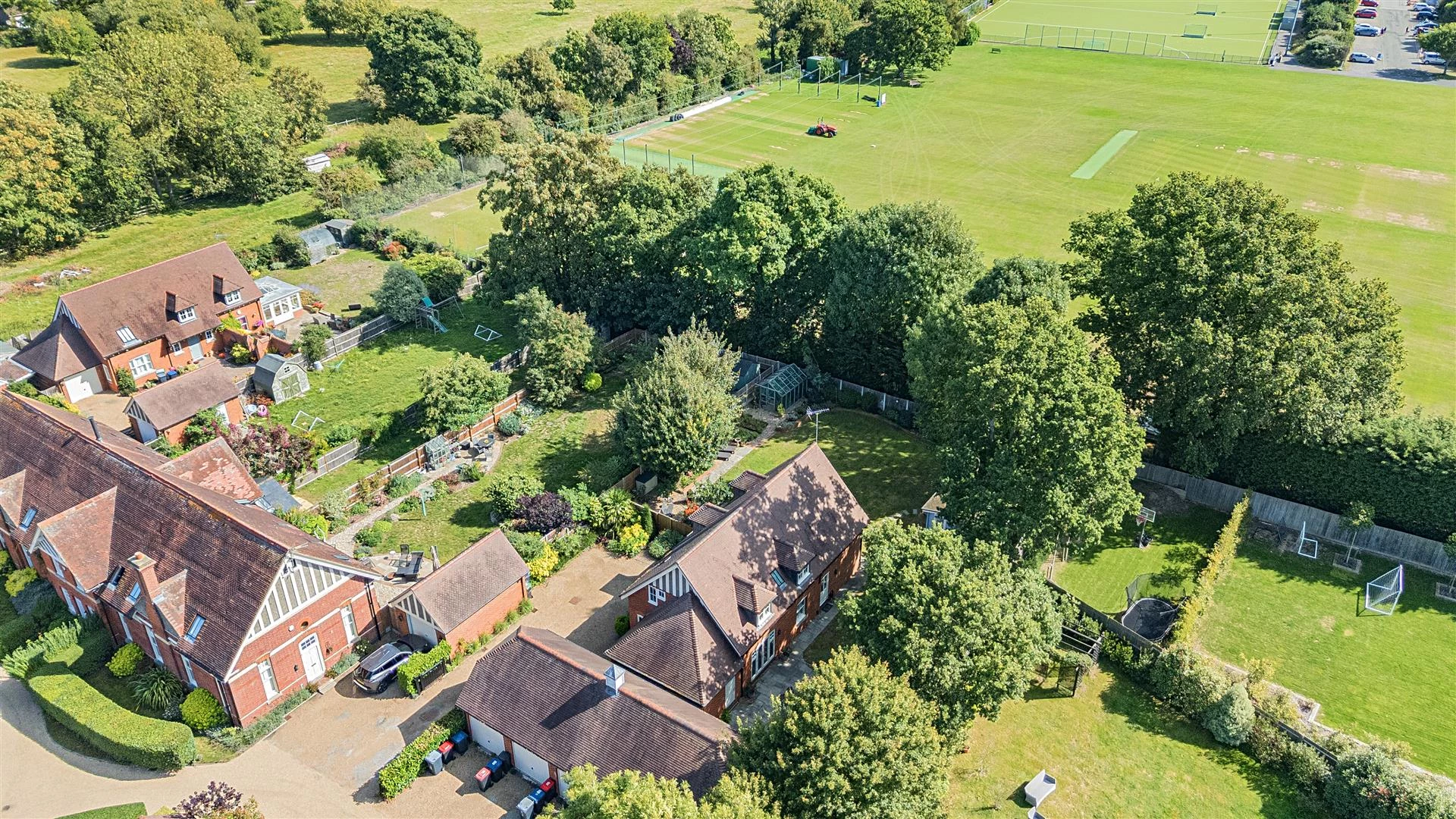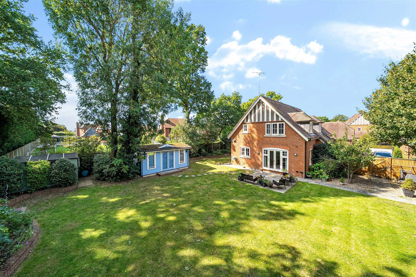 Outside, the property occupies a desirable corner plot, providing a high degree of privacy. There is ample off-road parking, a garage and a beautifully landscaped rear garden extending to approximately 113’ x 71’. The garden is well stocked with established trees and shrubs, paved seating areas, a generous lawn, and a detached summer house – ideal for conversion into a home office or studio.