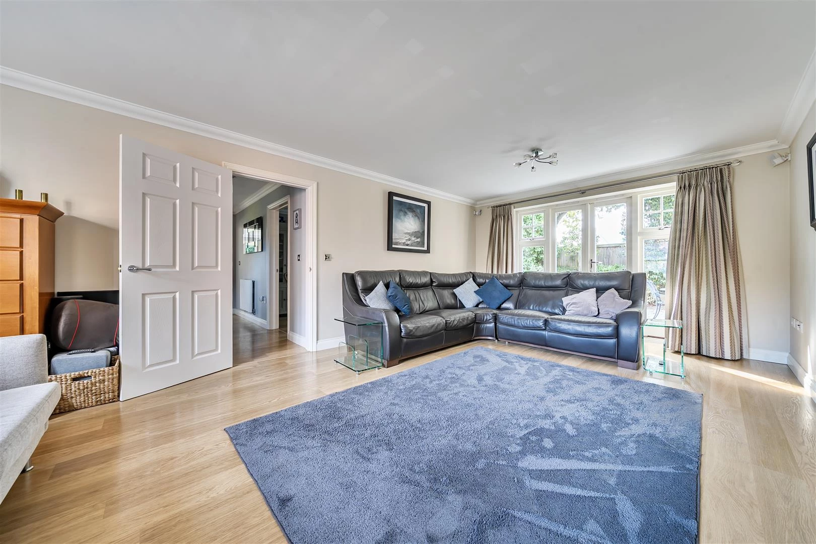 The front door opens to the spacious entrance hall with stairs to the first floor. The large, double-aspect sitting room provides ample space for family living and entertaining, while the stylish kitchen/diner, also double aspect, is fitted with an excellent range of wall and base units, integrated appliances and generous space for a dining table. French doors open directly onto the pretty rear garden. A separate utility room, a formal dining room and a downstairs cloakroom complete the ground floor.