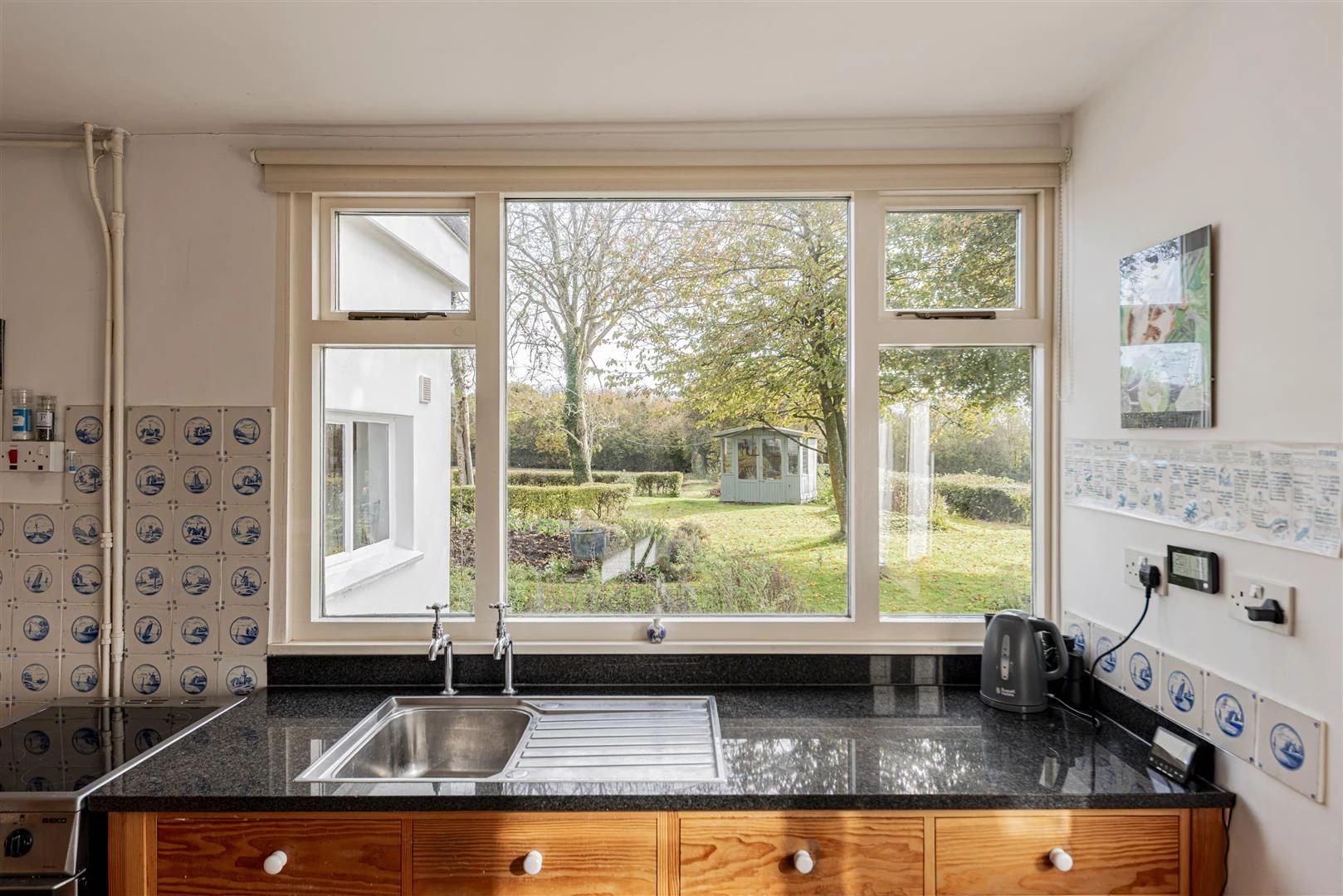 A solid brick-built outbuilding offers additional space, ideal as a home office, studio, or occasional accommodation.